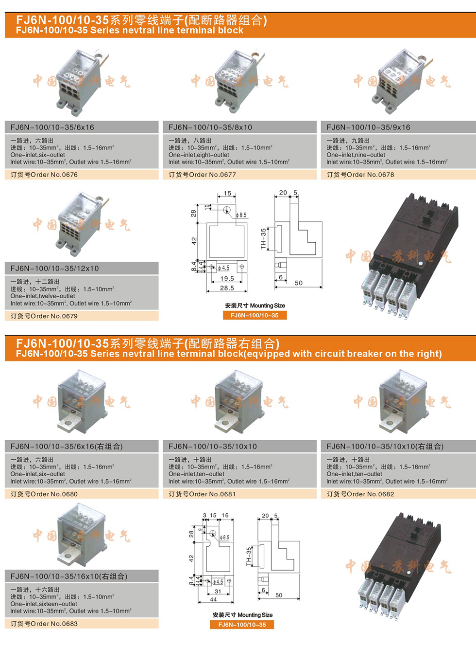 FJ6N-100/10-35 系列零線端子