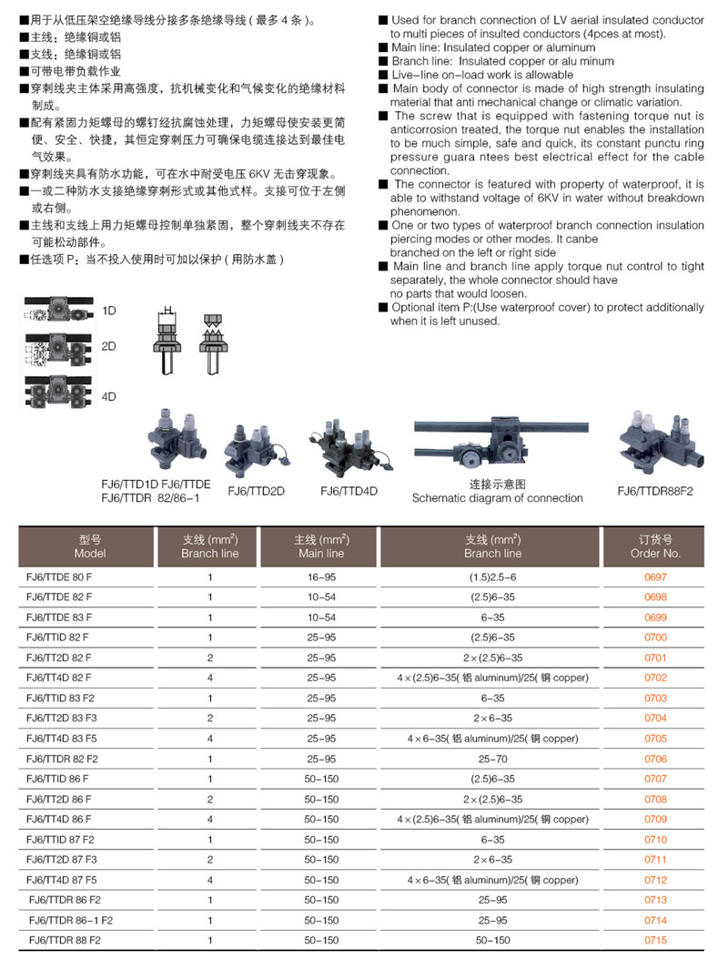 FJ6/TTD 80 系列分步式多支接絕緣穿刺線夾